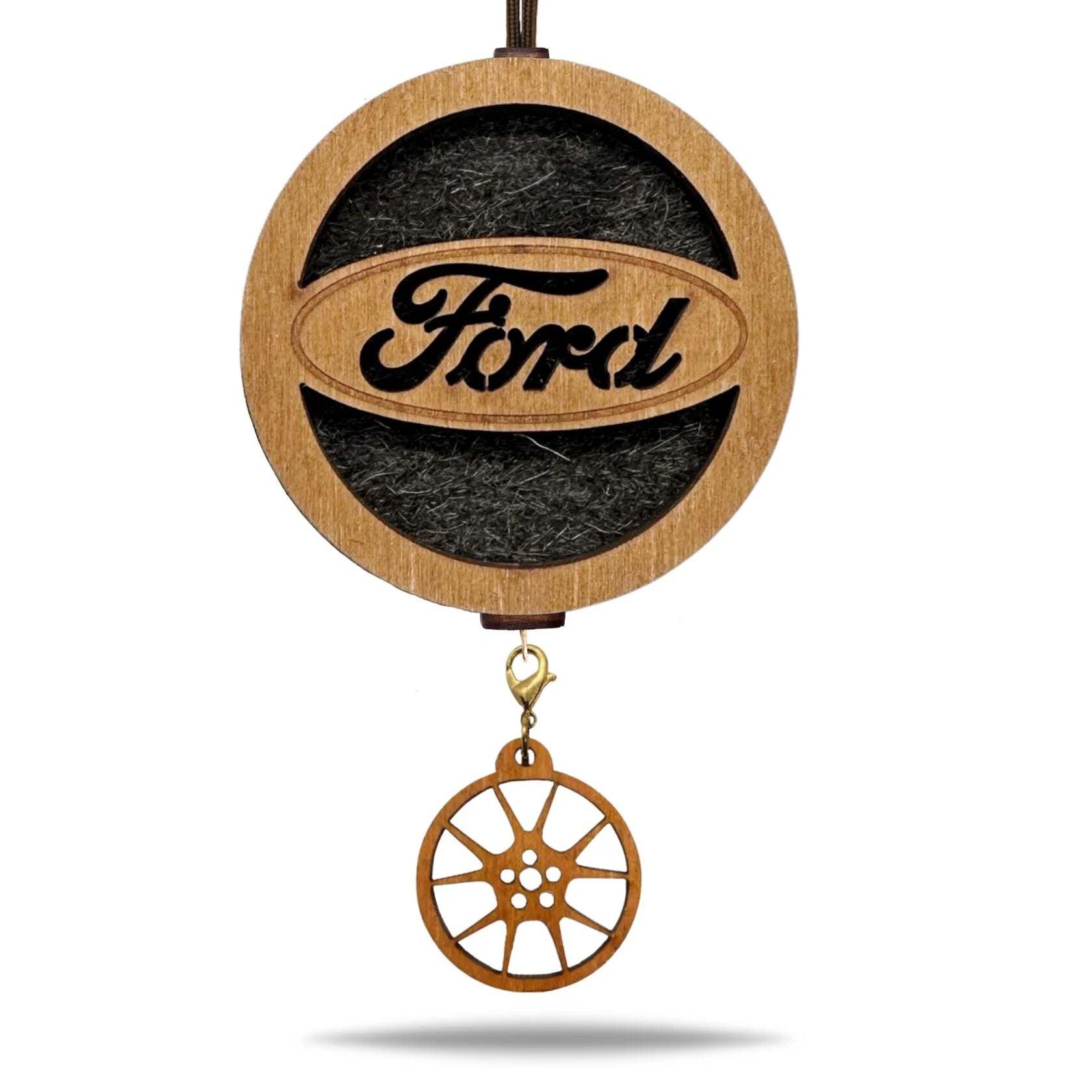 Prémiový prívesok do auta Ford v odtieni hnedá je elegantný doplnok, ktorý spríjemní každú jazdu. Vyrobený z prírodnej plsti a dreva, dobre absorbuje vôňu a postupne ju uvoľňuje do interiéru.