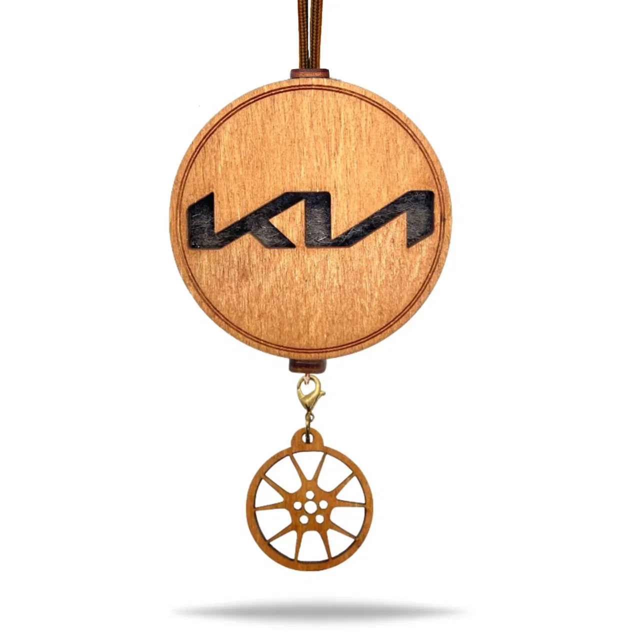 Prémiový prívesok do auta Kia v odtieni hnedá je elegantný doplnok, ktorý spríjemní každú jazdu. Vyrobený z prírodnej plsti a dreva, dobre absorbuje vôňu a postupne ju uvoľňuje do interiéru.