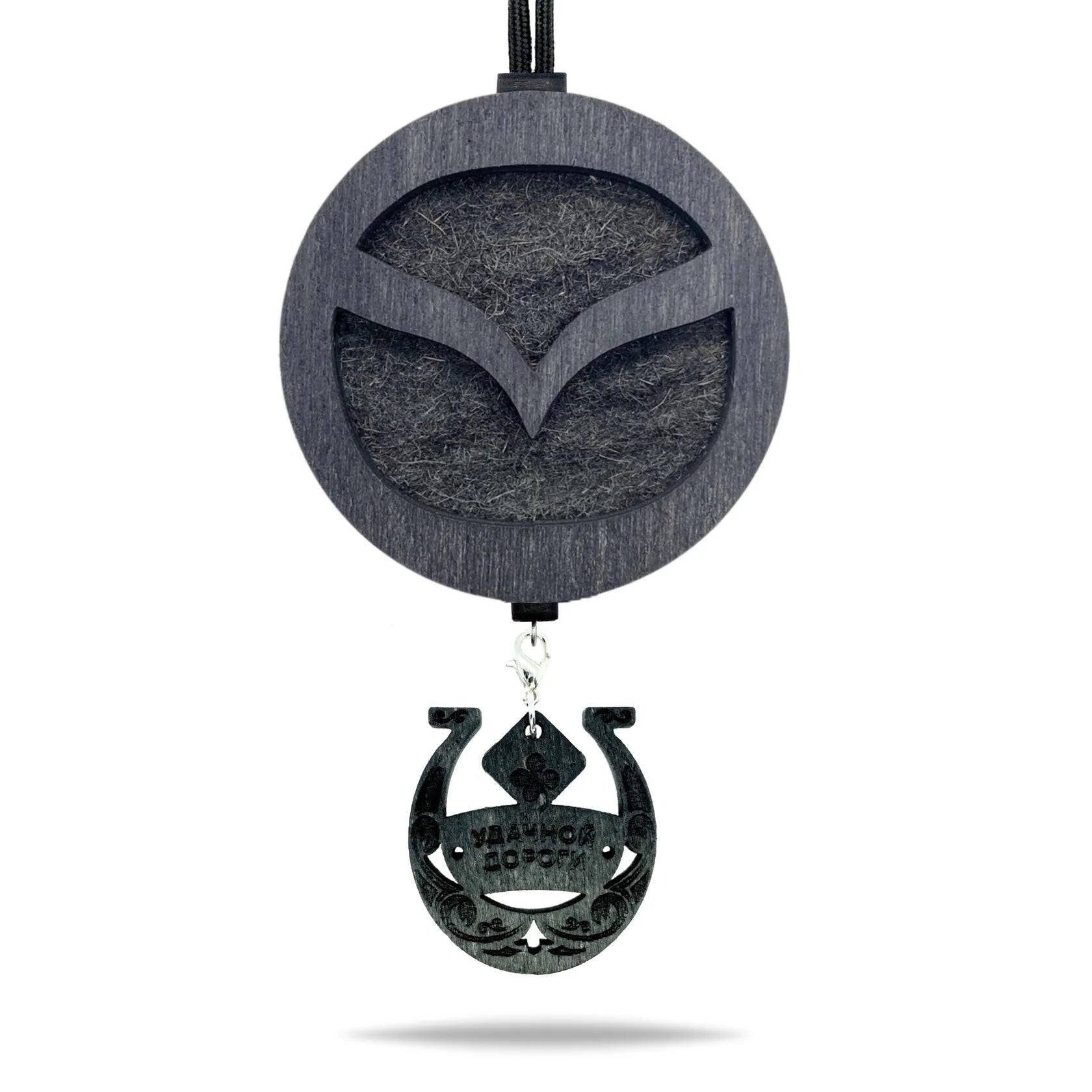 Prémiový prívesok do auta Mazda v odtieni Čierna je elegantný doplnok, ktorý spríjemní každú jazdu. Vyrobený z prírodnej plsti a dreva, dobre absorbuje vôňu a postupne ju uvoľňuje do interiéru.