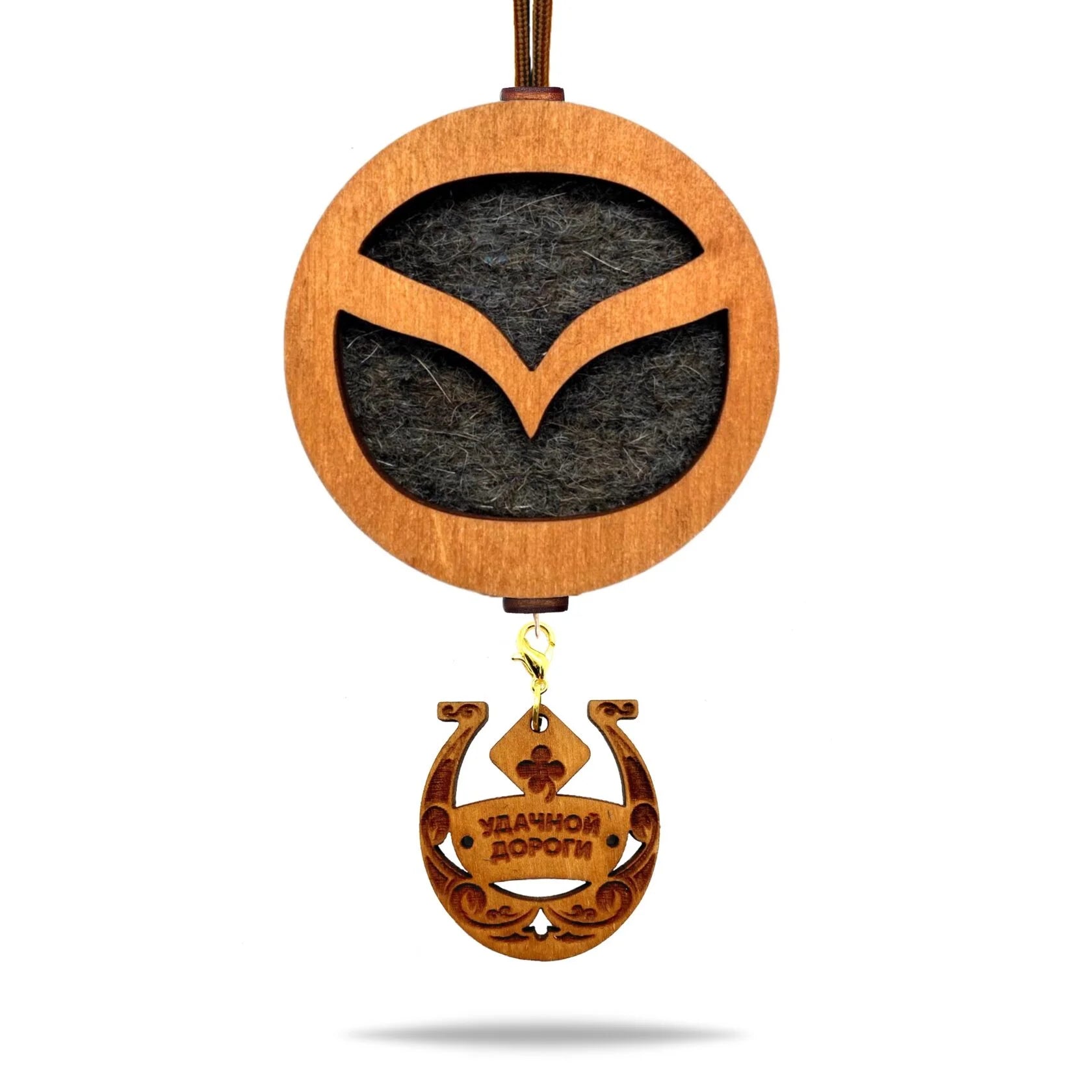 Prémiový prívesok do auta Mazda v odtieni hnedá je elegantný doplnok, ktorý spríjemní každú jazdu. Vyrobený z prírodnej plsti a dreva, dobre absorbuje vôňu a postupne ju uvoľňuje do interiéru.