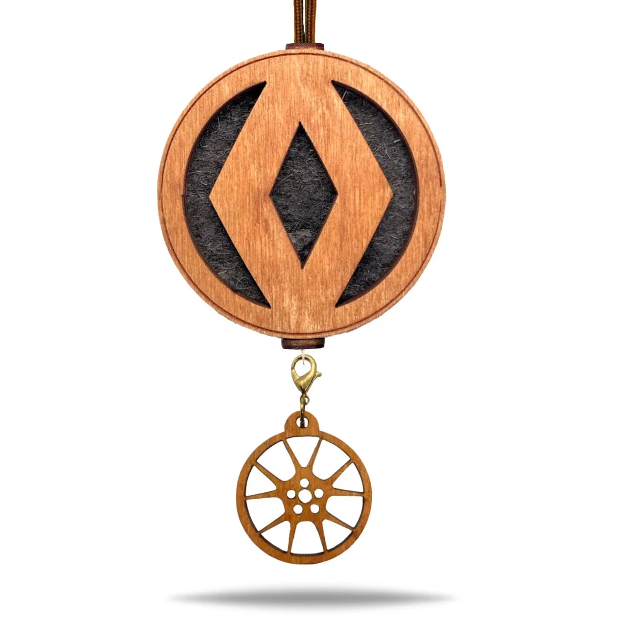 Prémiový prívesok do auta Renault v odtieni hnedá je elegantný doplnok, ktorý spríjemní každú jazdu. Vyrobený z prírodnej plsti a dreva, dobre absorbuje vôňu a postupne ju uvoľňuje do interiéru.