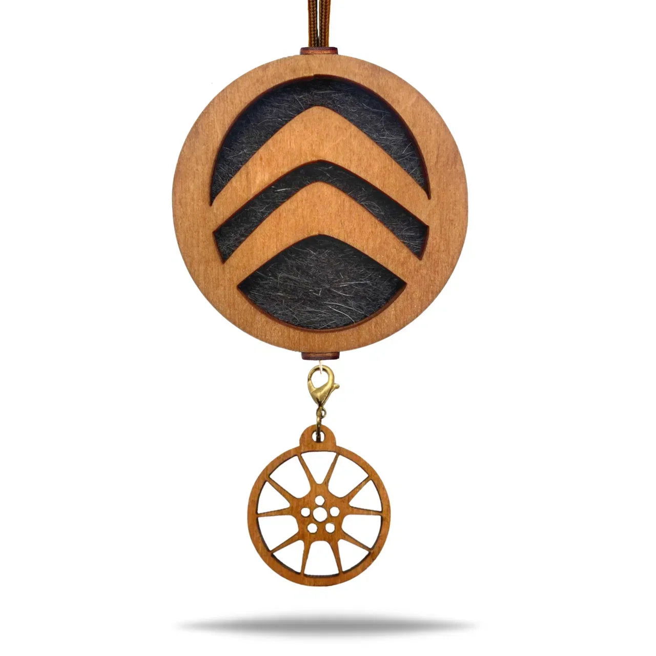 Prémiový prívesok do auta Citroen v odtieni hnedá je elegantný doplnok, ktorý spríjemní každú jazdu. Vyrobený z prírodnej plsti a dreva, dobre absorbuje vôňu a postupne ju uvoľňuje do interiéru.