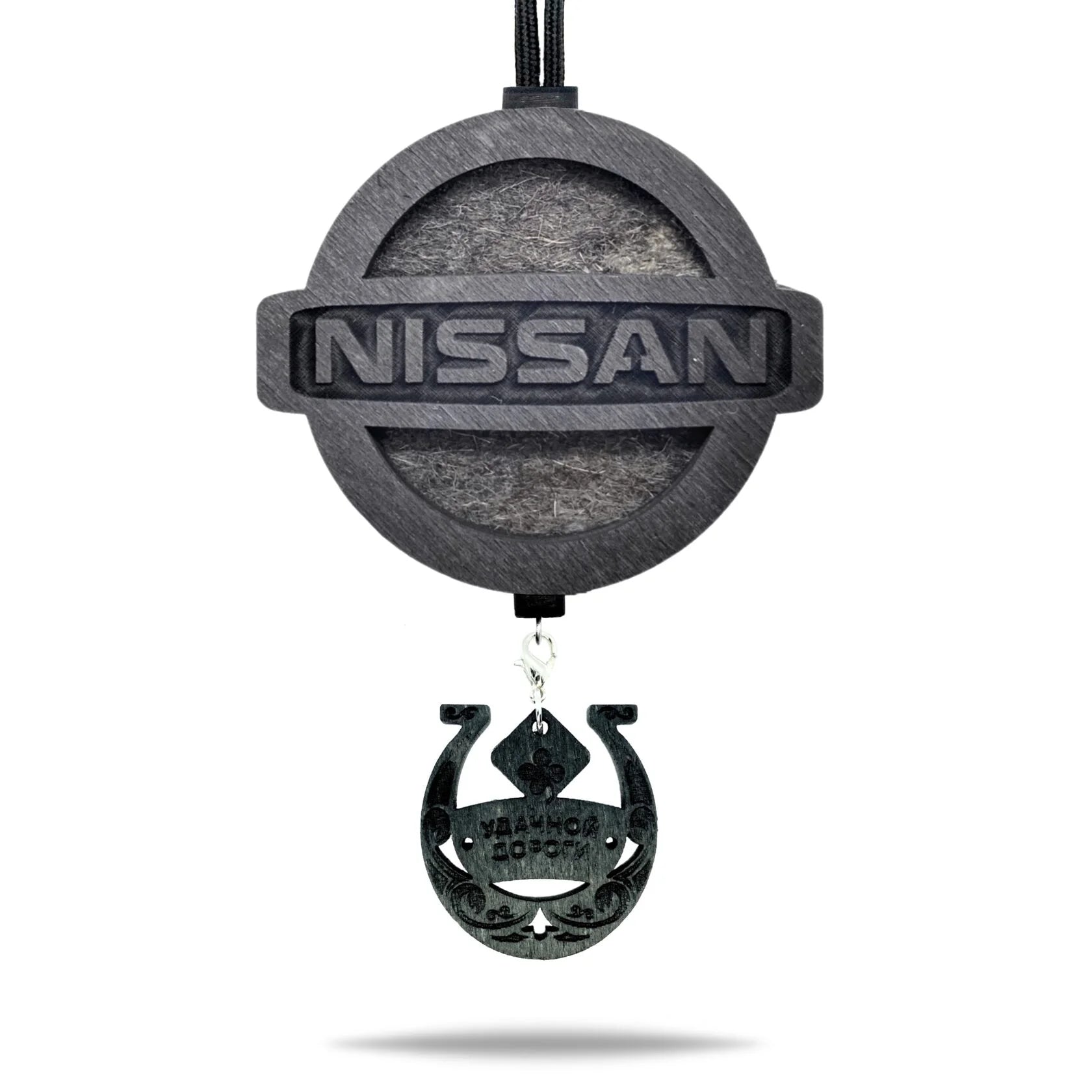 Prémiový prívesok do auta Nissan v odtieni Čierna je elegantný doplnok, ktorý spríjemní každú jazdu. Vyrobený z prírodnej plsti a dreva, dobre absorbuje vôňu a postupne ju uvoľňuje do interiéru.