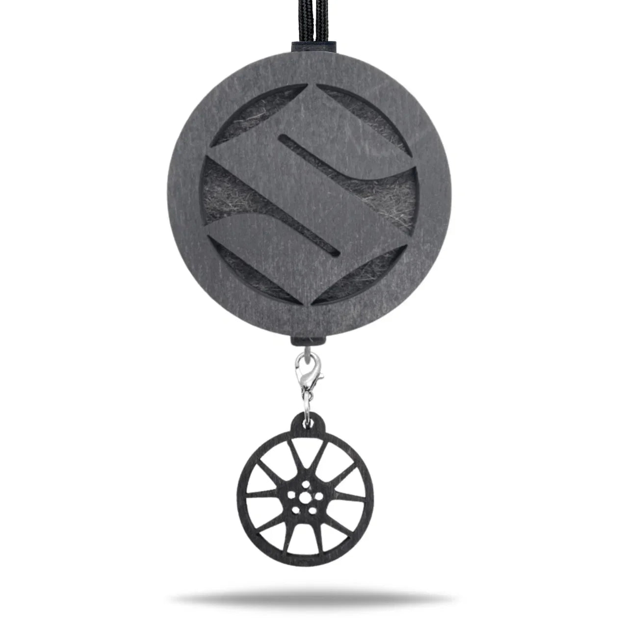 Prémiový prívesok do auta Suzuki v odtieni Čierna je elegantný doplnok, ktorý spríjemní každú jazdu. Vyrobený z prírodnej plsti a dreva, dobre absorbuje vôňu a postupne ju uvoľňuje do interiéru.